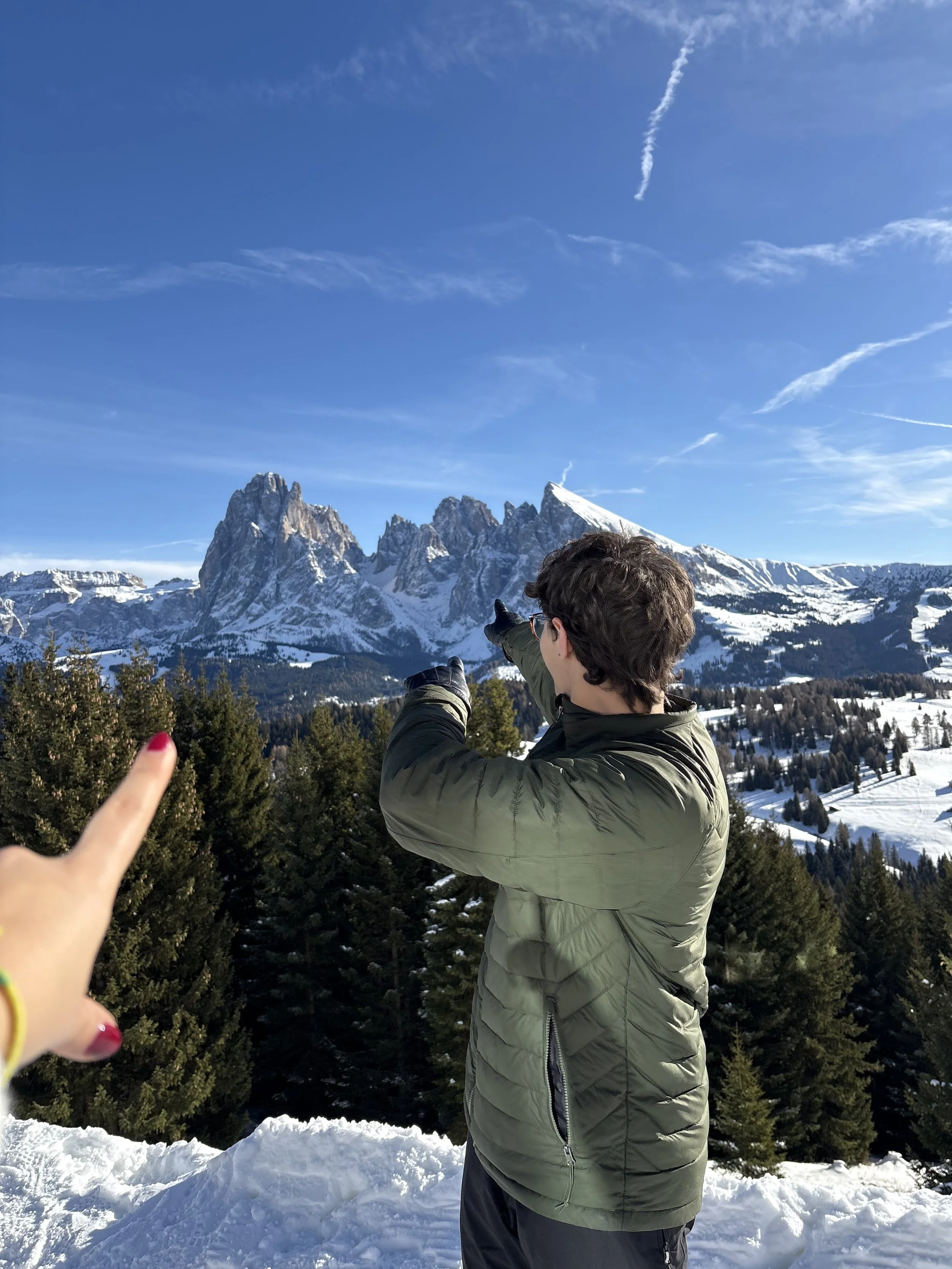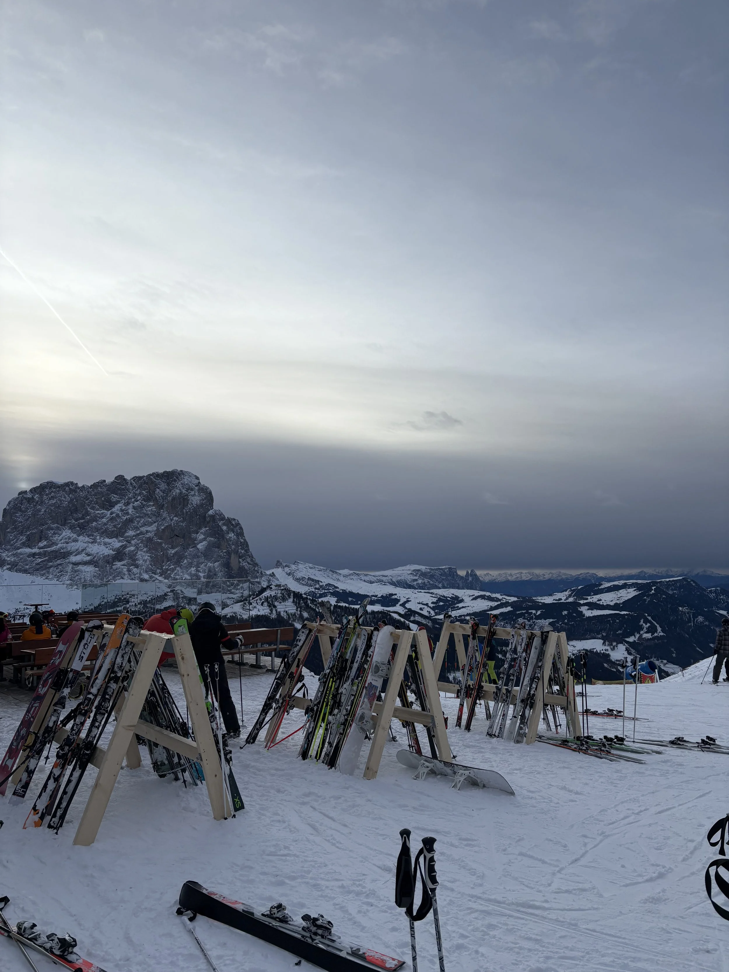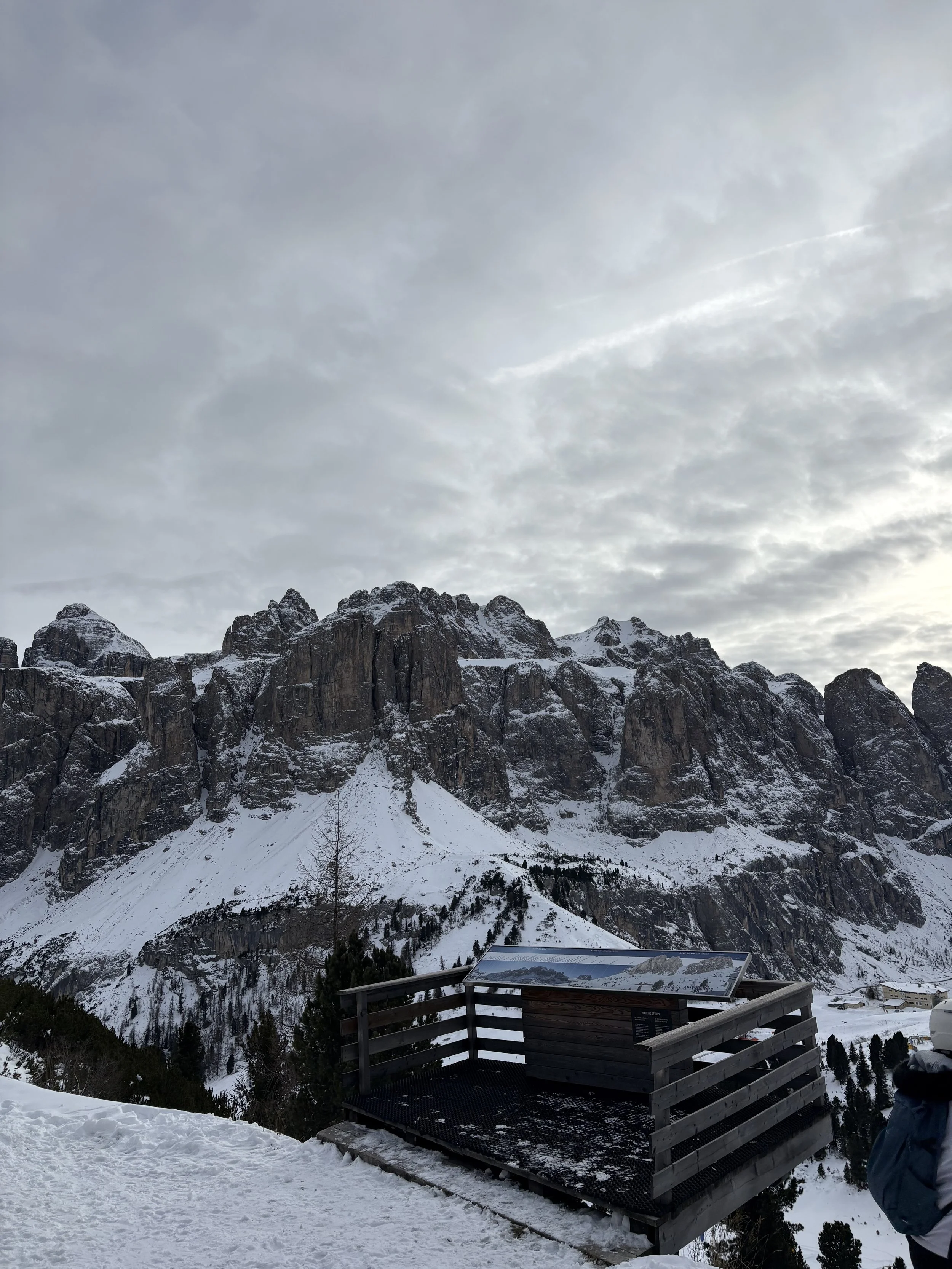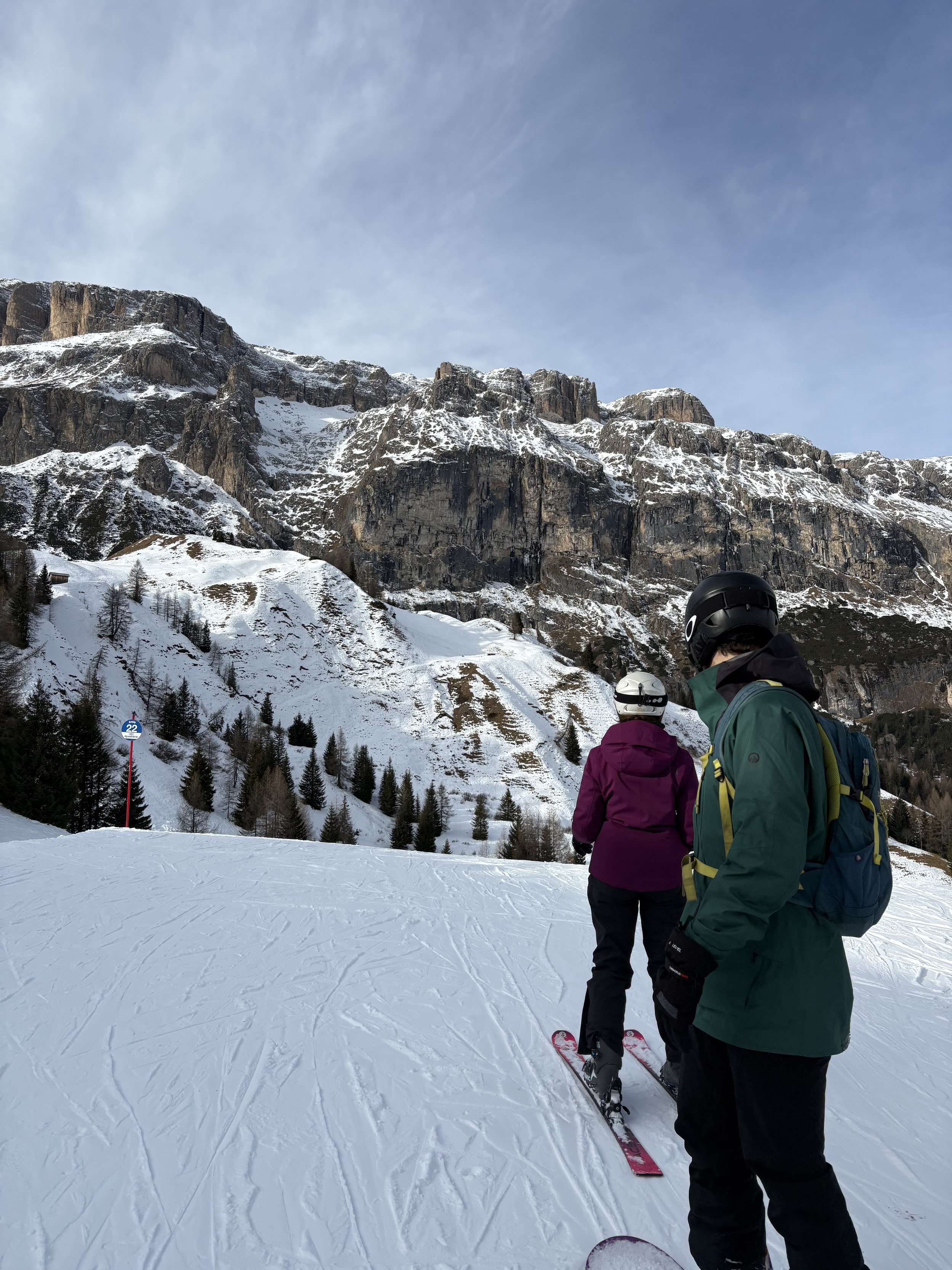 With each slope came an array of emotions. Some were fun and easy, allowing me to focus my gaze on the beautiful mountains ahead. Others were scary and took significant focus, effort, and some falling (again, with offers of help). At one point, I accidentally took a wrong turn and got separated from my friend, realizing only a great distance down the slope. Noticing my struggle to hike up the slope, a group of Italian men skiing graciously stopped to redirect me and get me to where I needed to go. I had only ever practiced my Italian in a calm setting, so the true test of my language abilities was to communicate when I was tired, scared, and panicking. I reconnected with my friend, and just as the sun set on Selva, we completed with sore calves, aching shins, and lots of pride. It’s no surprise that I needed a coffee before our drive back. I’m thrilled to have been able to check off this dream, and I’m really looking forward to whenever I can come back. I was missing the city living by the end, but I know I’ll miss the mountains quickly enough.
