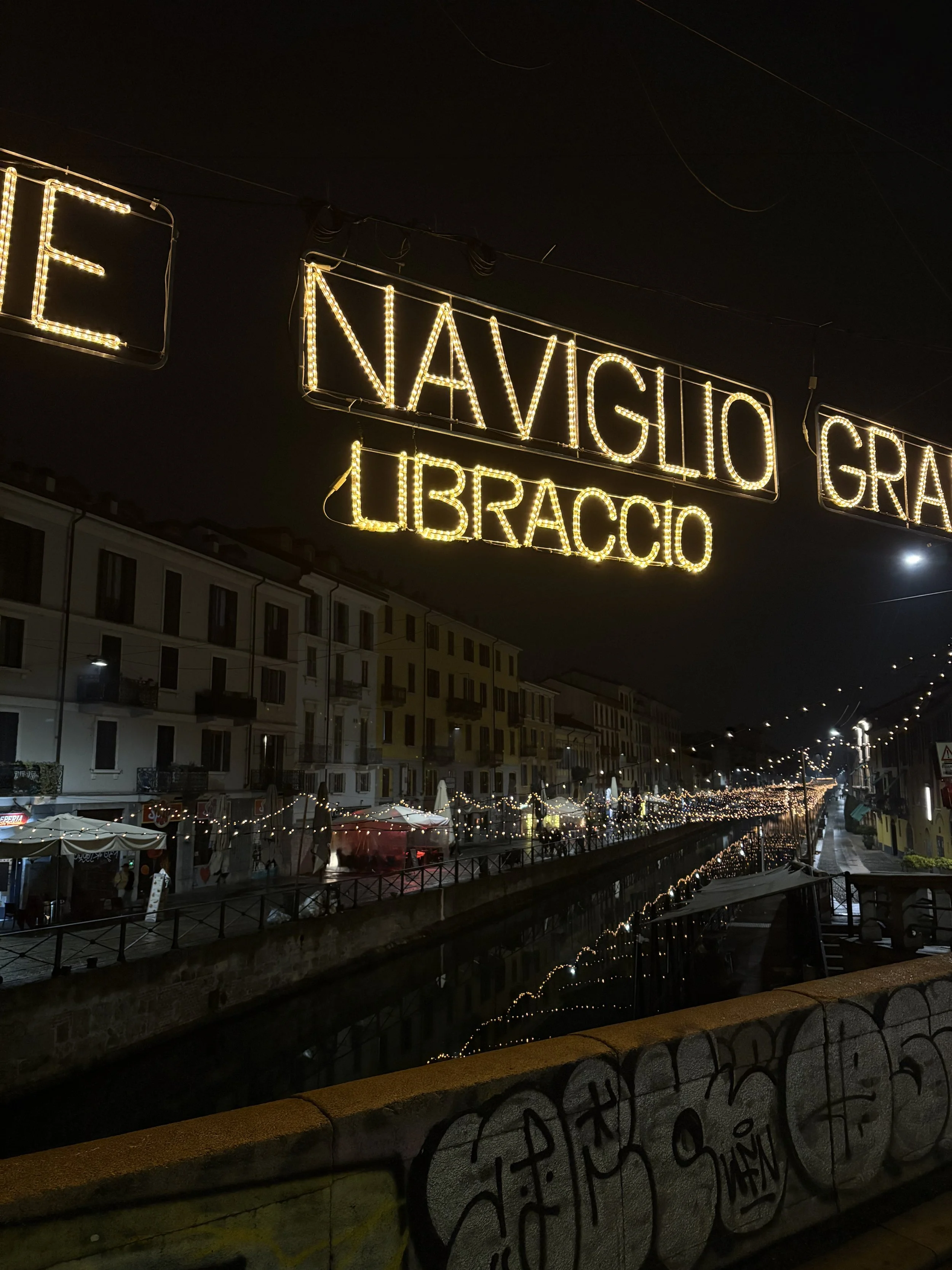 This Thursday was my last day of classes, bringing the semester almost to a close, with only projects and exams ahead of me. I spent much of my time during the week preparing for these, and when I wasn’t, I was taking walks around Milan at night to enjoy the winter lights and ambiance. During one day of the week, I met up with a friend for drinks at a bar called Mag in Porta Genova, which I believe is different from the Mag I knew from before in Navigli. This Mag was much more sophisticated, with dim lighting, upscale decorations, and a more professional, older crowd. This was right after working hours, so I saw a lot of Milan’s employees coming for a drink after their shift and felt a bit underdressed.