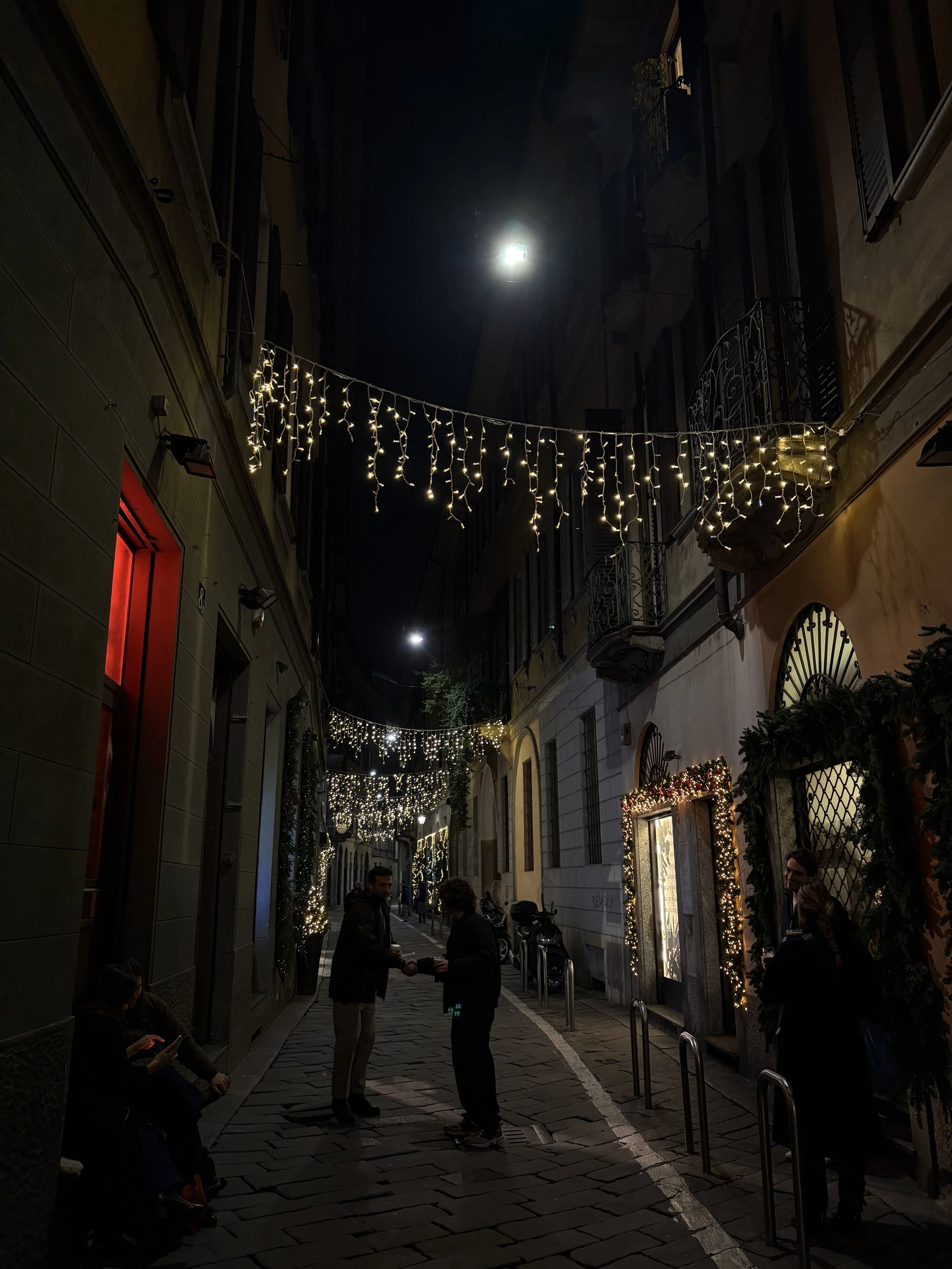This week, I got to see a little more of how Milan works under colder weather. The small city in New York where I grew up, and even Philly, lose a lot of outdoor activity with the onset of winter. While walking around the city, even with my hands and nose feeling numb and a pair of thin gloves, restaurants were still filling their outdoor seating, and bars still had a robust community of people standing and chatting outside. To me, this is a great shift from the usual duller feeling I find winter brings in the Northeast. There’s a chance the situation will change further into December, but friends who have been living in Milan for some years tell me outdoor crowds and gatherings are still found well into winter.