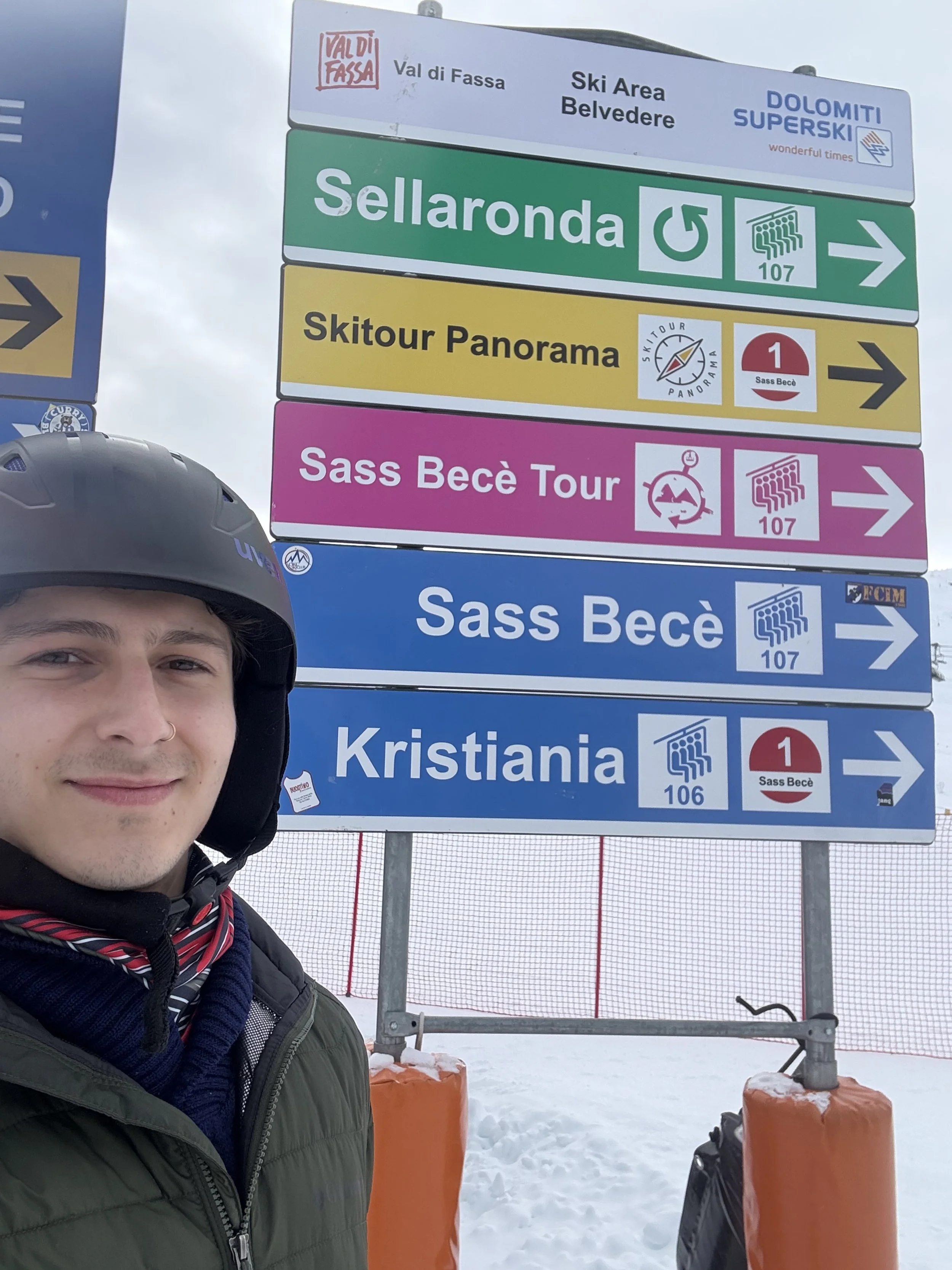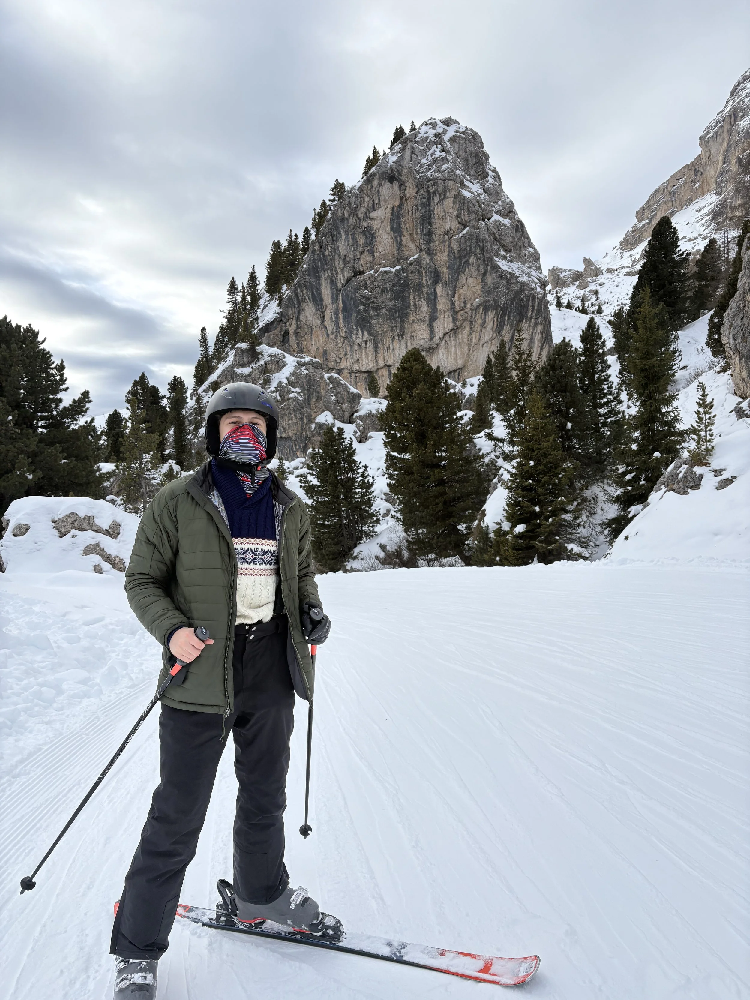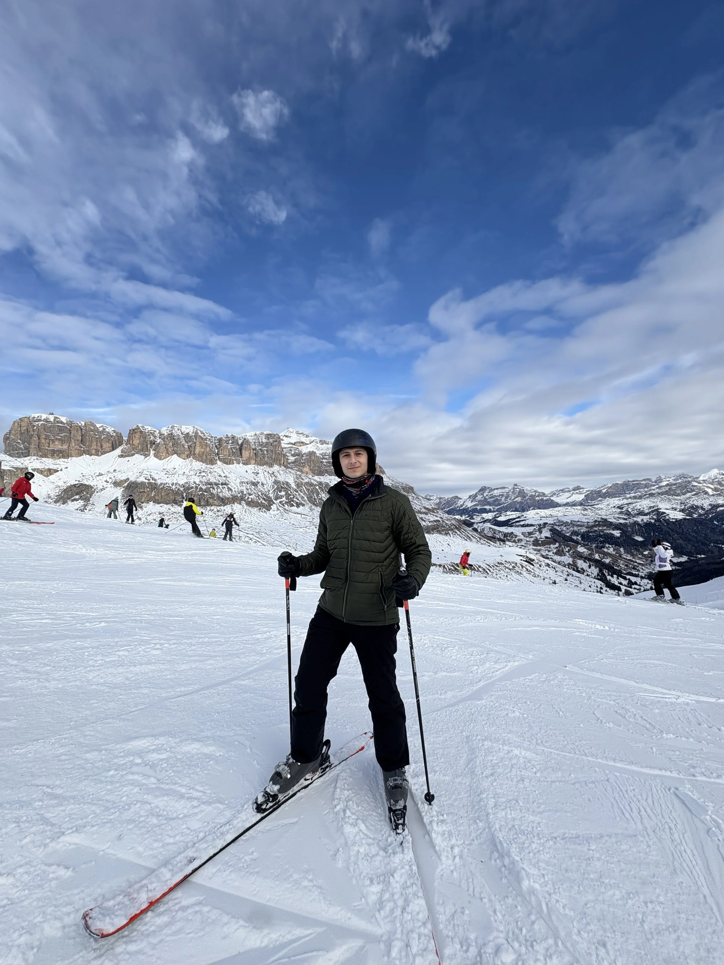 After watching the sun start to set on a ski slope, my friend brought up taking the big lift back down to the ground. Feeling full of joy and unjustified confidence, I told her I’d meet her down and decided to ski down the mountain on an intermediate slope beginning with a huge sign reading, “Experienced Skiers ONLY.” I began the slope and quickly questioned what sort of experience that sign is referring to. This slope surpassed the difficulty of even the hardest slopes I’ve skied down in New York. Throughout multiple points in the ski, I had to fall on purpose out of fear of what was coming ahead and wait for my heart rate to settle. This was all while the true experienced skiers dodged and zipped past me as if they were on a calm riverside jog. Some skiers stopped and offered help, and at some points, I considered taking them up on it. Nevertheless, I kept on keeping on, and eventually arrived at the bottom shaken up and feeling like a changed man. I found out later that this slope, called Pilat, is one of the “Legendary 8” ski slopes of this resort, Val Gardena, distinguished for their length, difficulty, or history. Learning this fact made me feel infinitely better about my struggle getting down and gave me an ego boost I don’t think I’ll ever let go of.