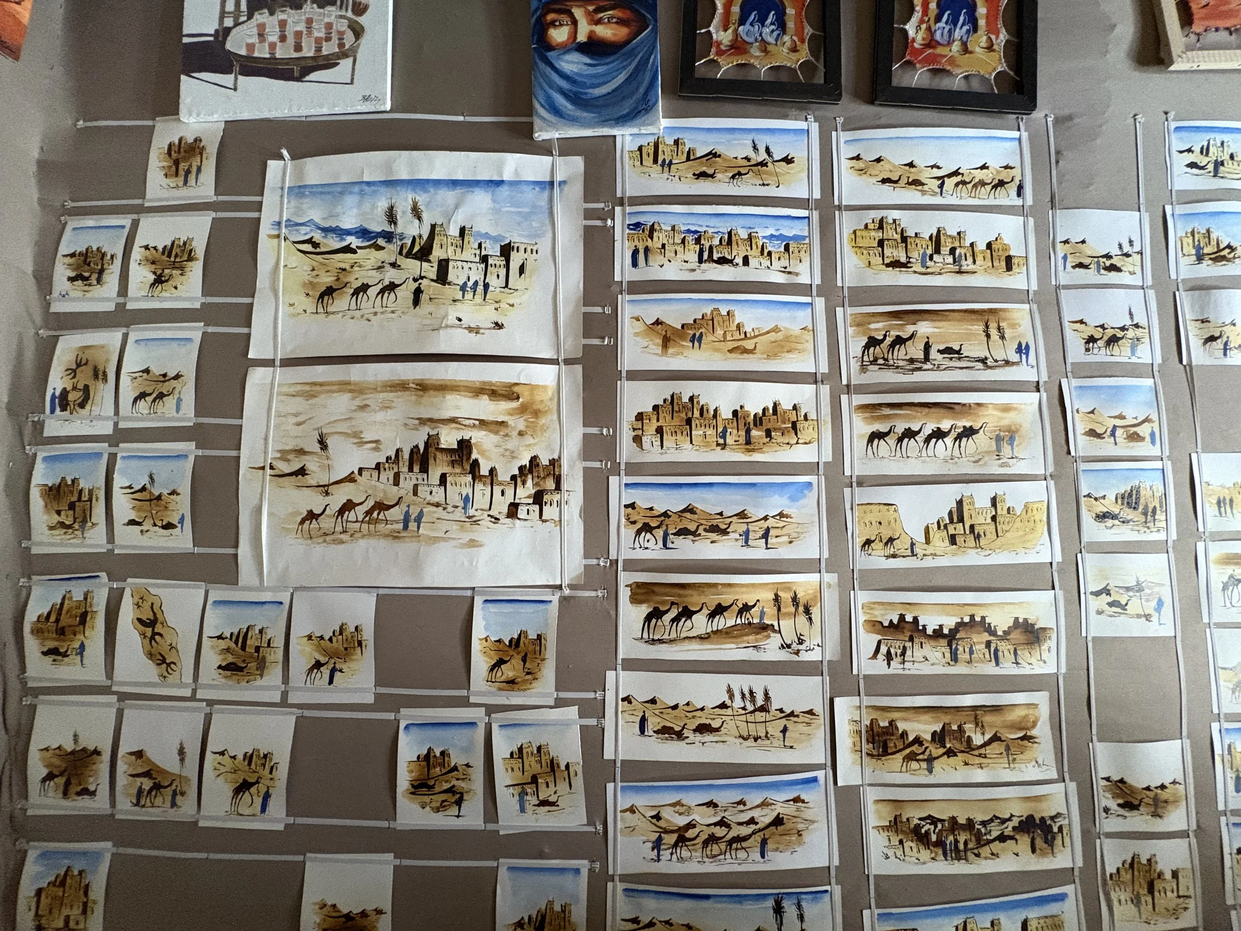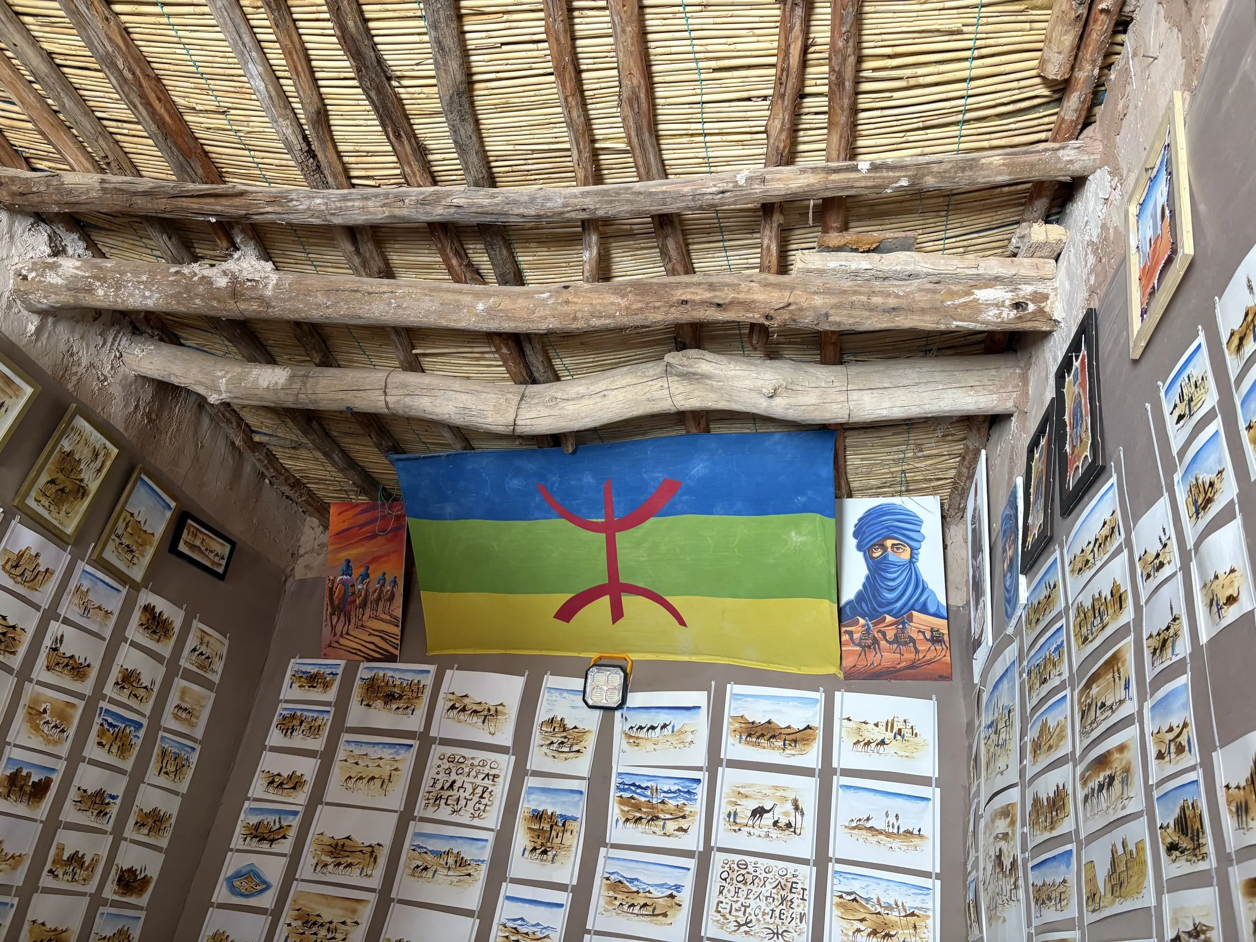 We also got a small crash-course about the Berber alphabet, where we learned that the symbol on the Berber flag, something we saw on stickers, shoes, and spray-painted walls all throughout this slice of Morocco, is a letter. However, when written alone, it means “free man” (there is an analogous letter corresponding to “free woman”), and when written in red as it is on the flag, its meaning changes to “freedom”. It was during this crash course that we got to see a Berber art and communication form in practice: writing done using a material that appears only when held under a flame, made for both beautiful art and secret communication.