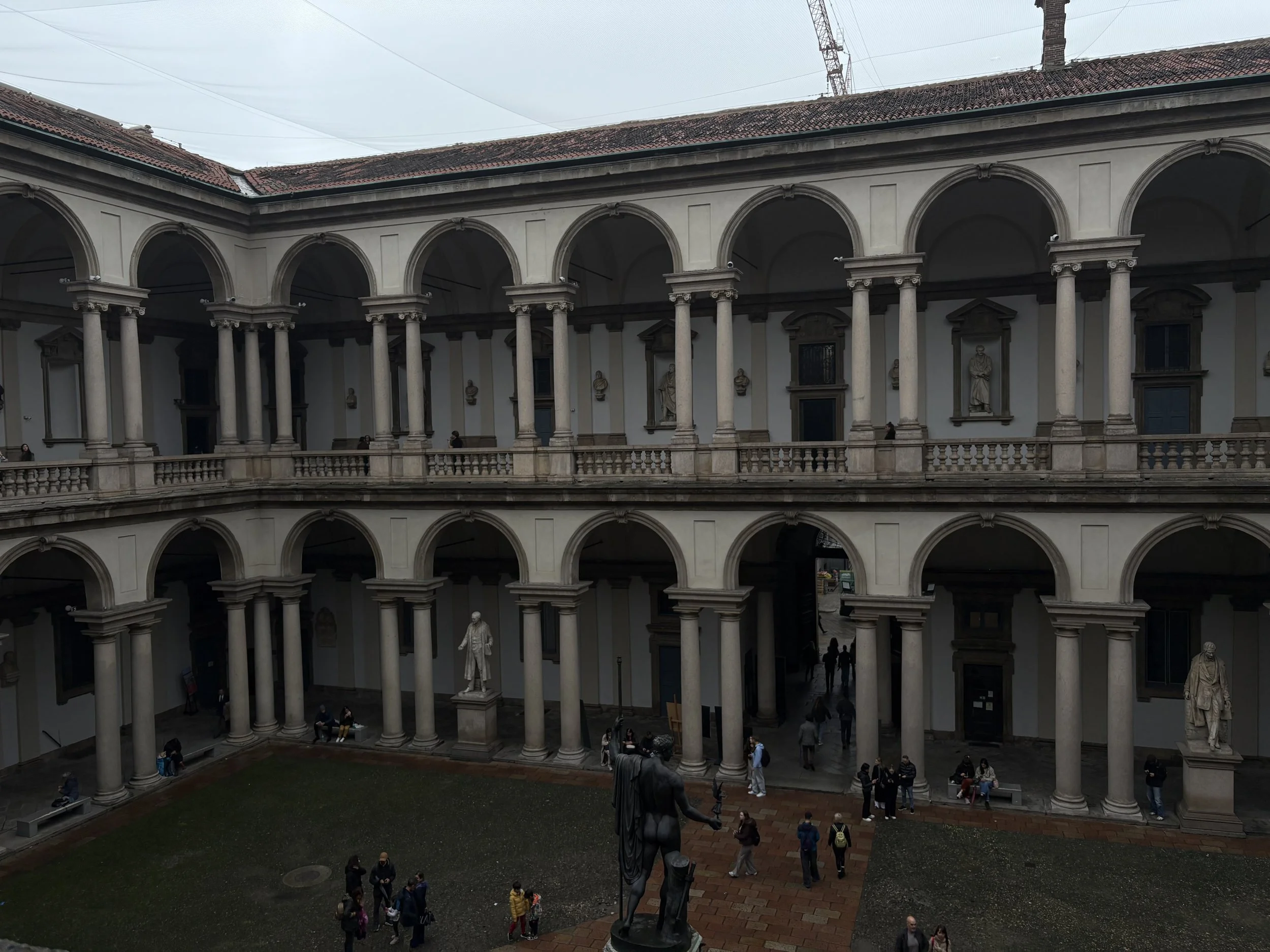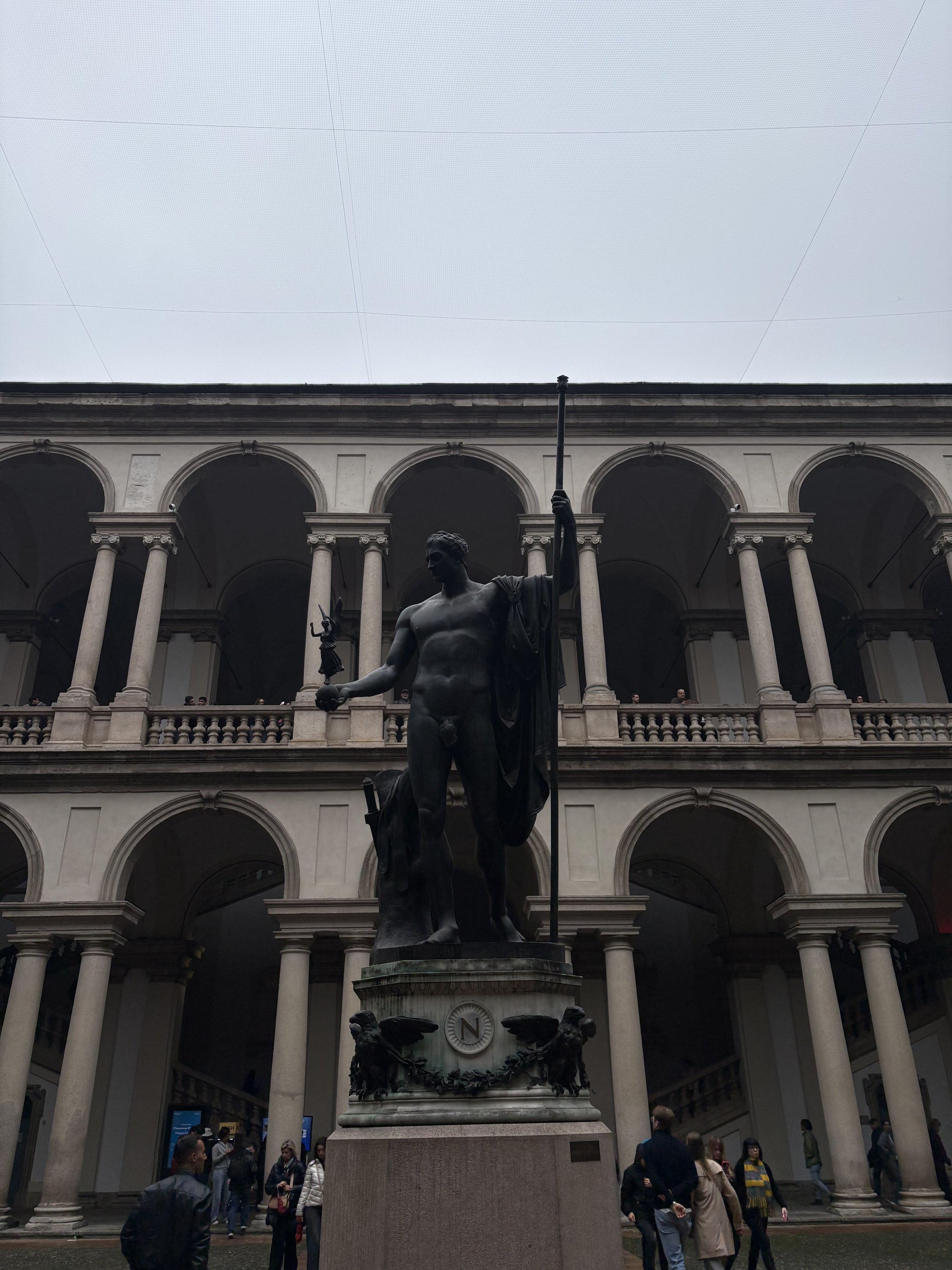 Over the weekend, I wanted to explore some more museums in Milan, starting with Pinacoteca di Brera, an art museum in the Brera neighborhood. Unfortunately and to my surprise, tickets for entrance were entirely sold out, so I could only explore a limited section of the building. I got to see a few different statues and sculptures, including one from the Rotary Club of Milan. There were also some posters advertising events for students of Accademia di Brera, a fine arts academy holding students there. I will have to return, though, next time with pre-booked tickets.