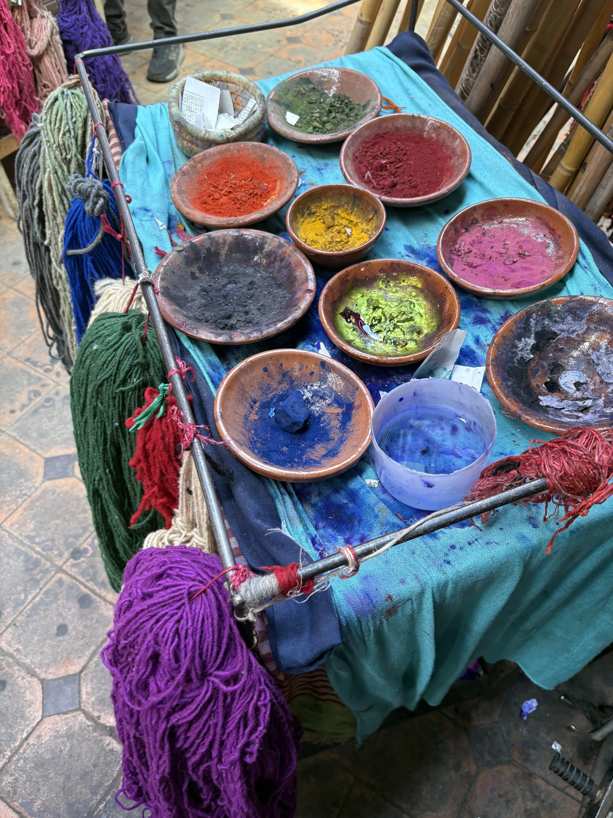 Interestingly, the value of a rug has nothing to do with how long it took to make, but with the value of the fabric and dye used. In the U.S., where textile-making is very commercialized with very little hand-making and hand-dying, we wouldn’t see an upcharge for a different color rug. Here, a yellow and pink rug, signifying use of saffron and rose petals, is significantly more expensive than a green rug from mint and alfalfa, due to the differing costs in the natural dyes used.